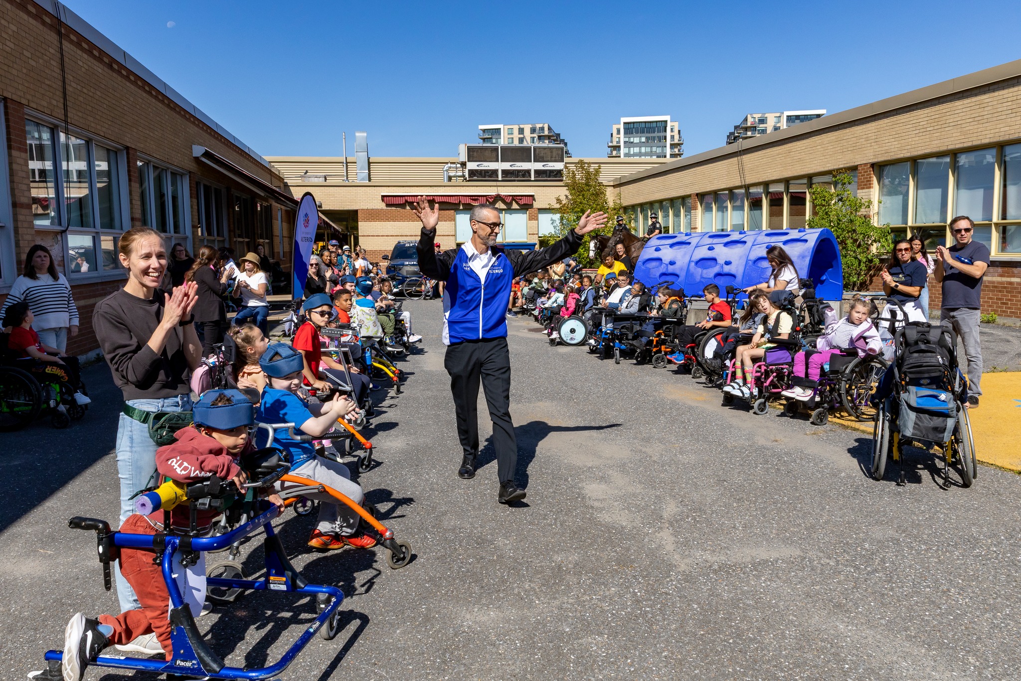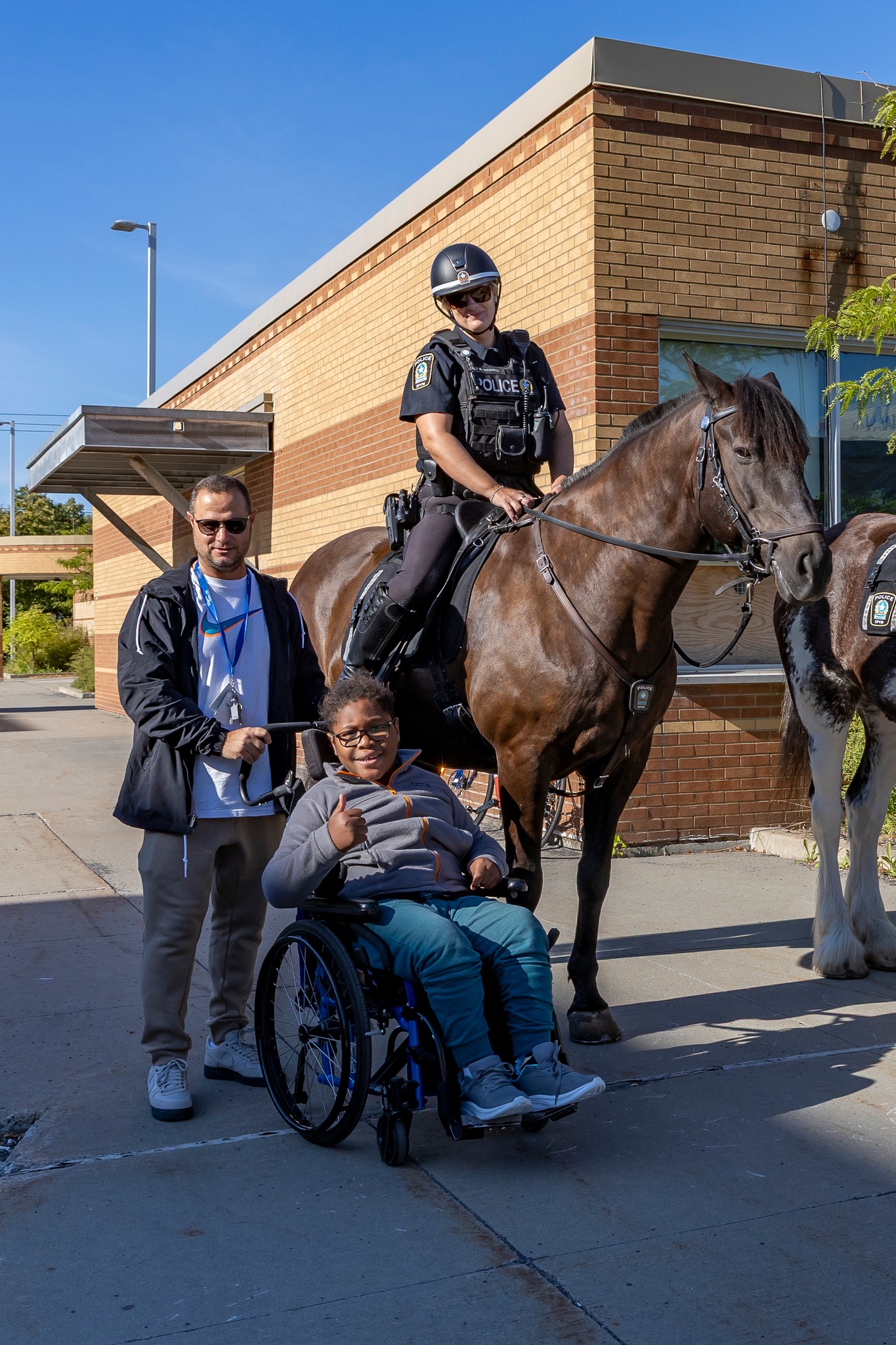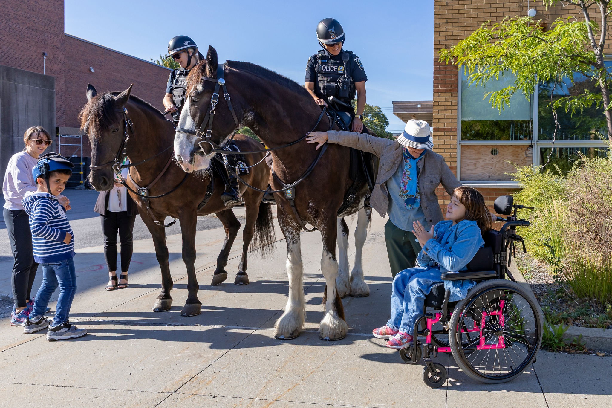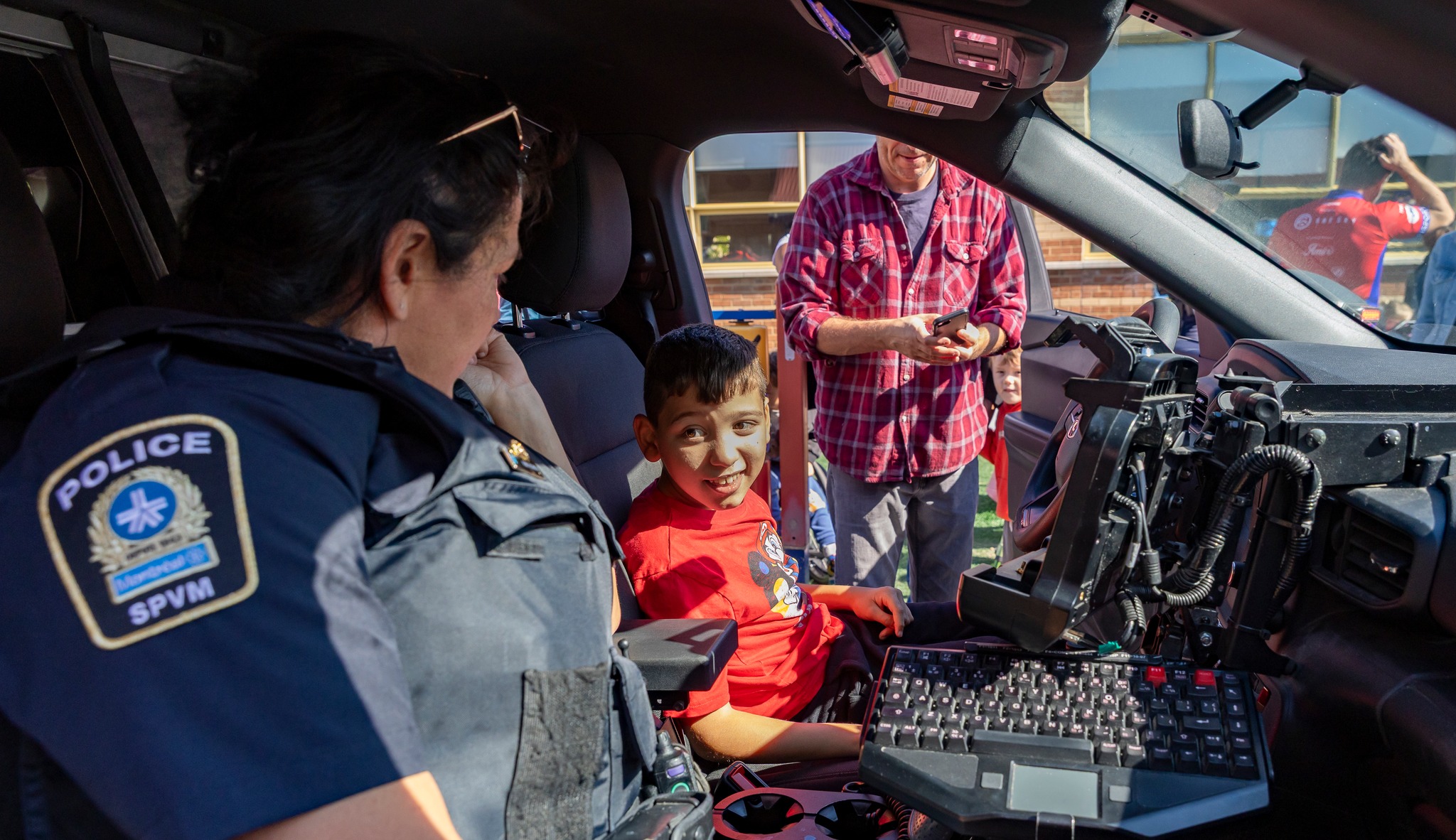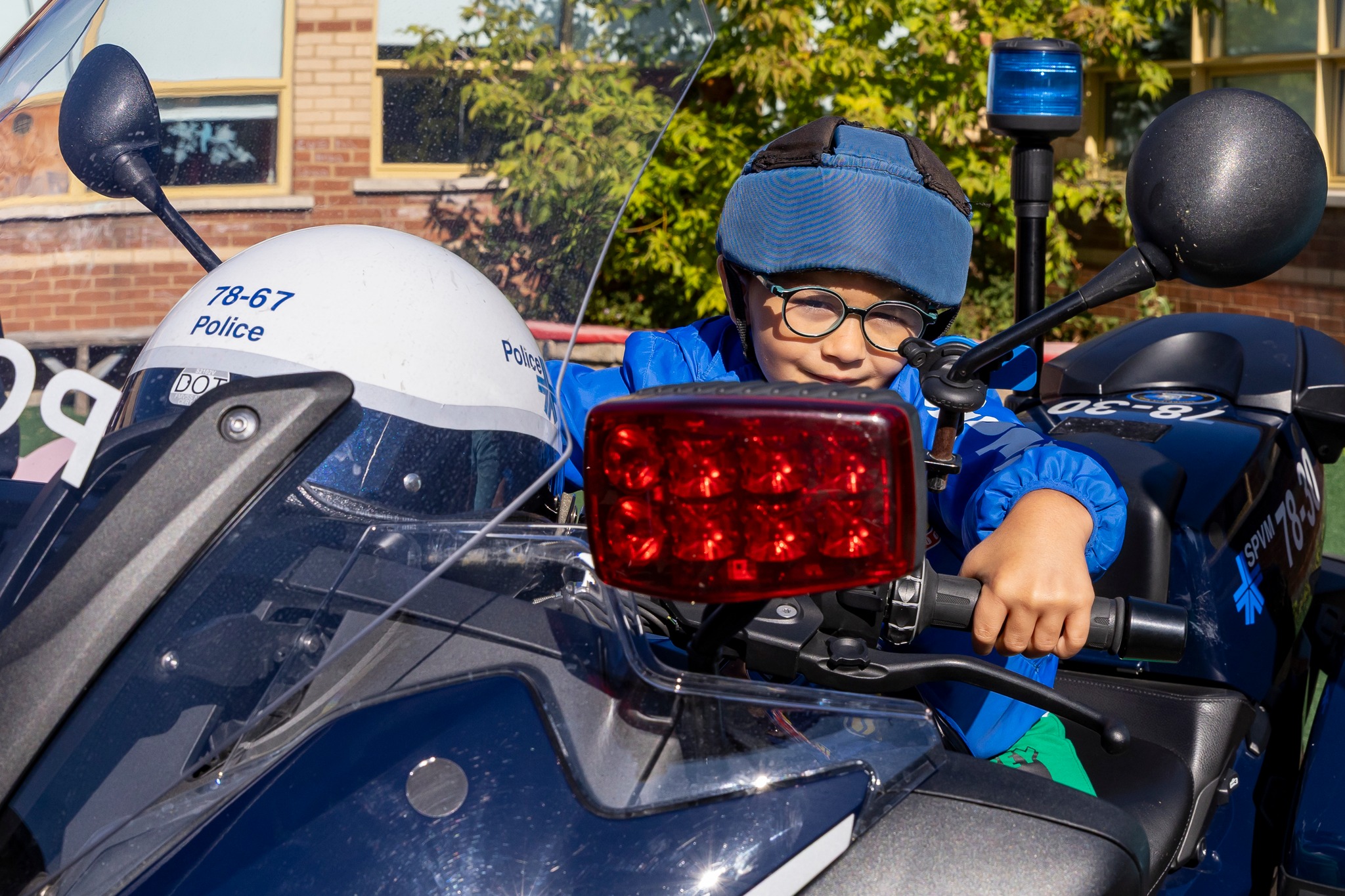 Les élèves de l’école Victor-Doré ont vécu un avant-midi hors du commun en flattant les imposants chevaux de la cavalerie, en montant sur des motos et à bord d’un véhicule du SPVM. Ils ont aussi fait la rencontre de Flik, la mascotte.